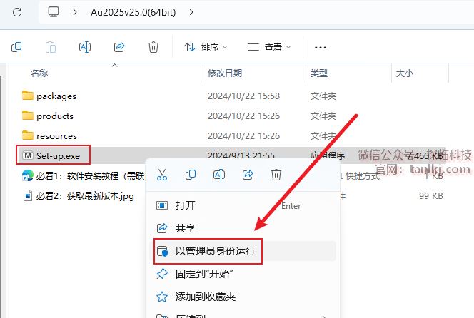 打开解压后的文件夹,右键安装程序【Set-up】,点击【以管理员身份运行】。
