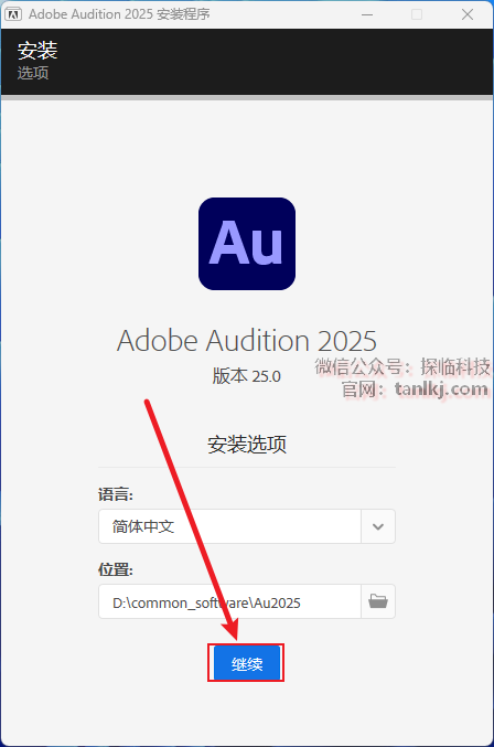更改软件默认的安装位置,如不需更改,直接点击【继续】即可。