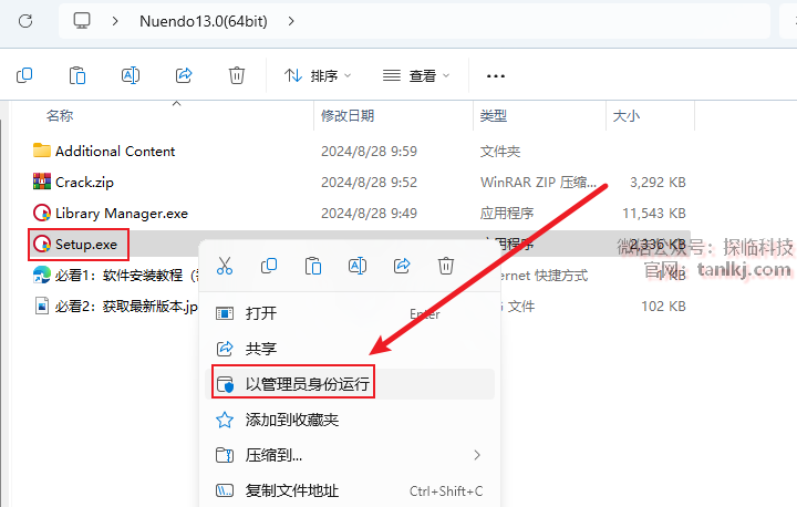 打开之前解压后的文件夹,右键程序【Setup】,点击【以管理员身份运行】。