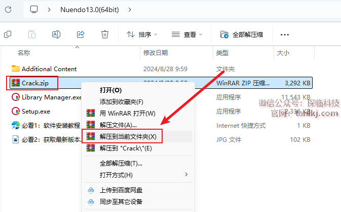 解压下载后的软件包。右键软件包,点击【解压到当前文件夹】(win11系统需先点击【显示更多选项】)。 (未安装解压软件可以点击此处查看:如何安装解压软件?)