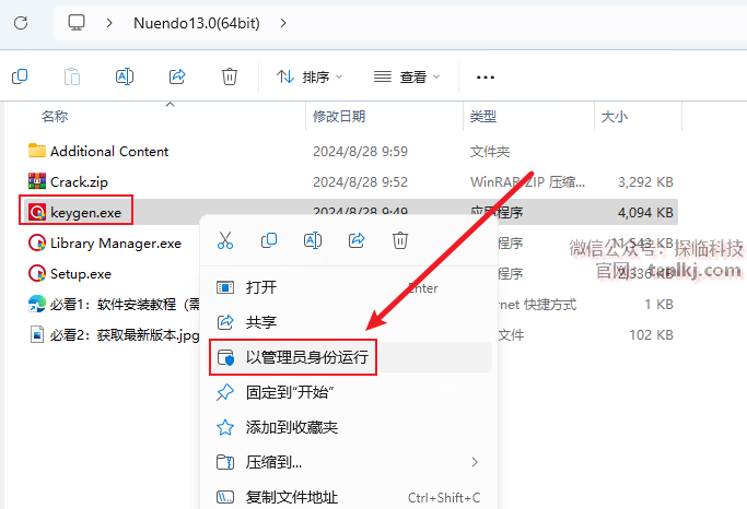 右键解压出来后的程序【keygen】,点击【以管理员身份运行】。