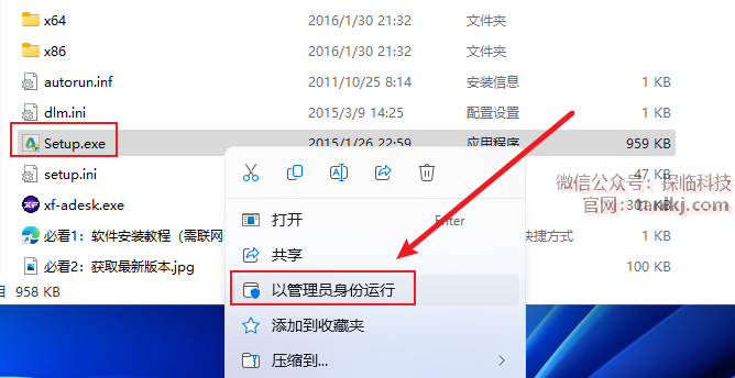 打开解压后的文件夹,右键程序【Setup】,点击【以管理员身份运行】。