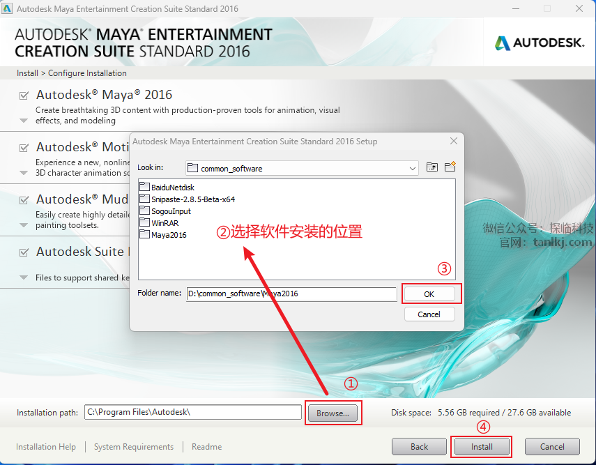 ②选择软件安装的位置,安装路径中不能包含任何中文字符;