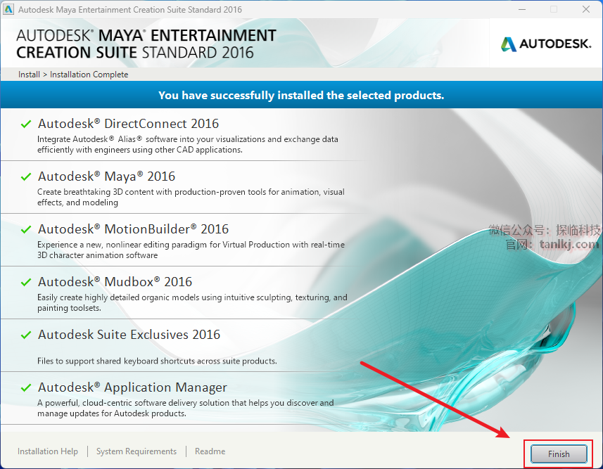 安装完成后,点击【Finish】。