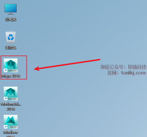 在桌面,双击运行软件【Maya 2016】。