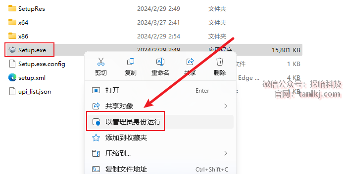 右键程序【Setup】,点击【以管理员身份运行】。