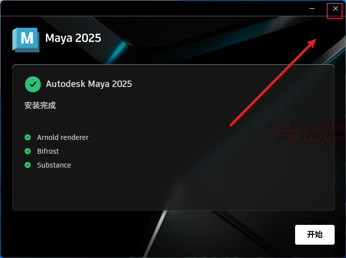 安装完成后,点击右上角的【X】关闭程序。