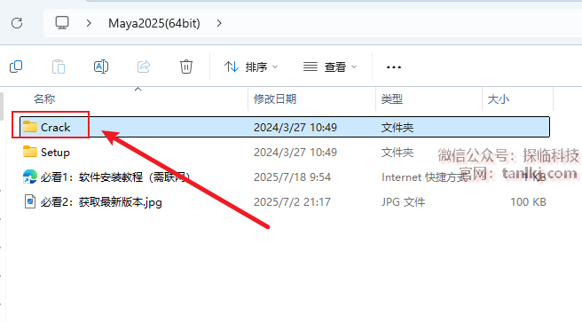 打开之前解压后的文件夹,双击打开文件夹【Crack】。
