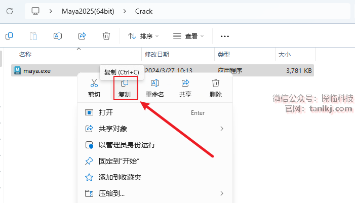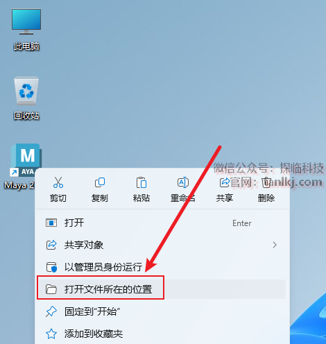 在桌面,右键软件【Maya 2025】,点击【打开文件所在的位置】。