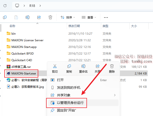 打开解压后的文件夹,右键程序【MAXON-Start】,点击【以管理员身份运行】。