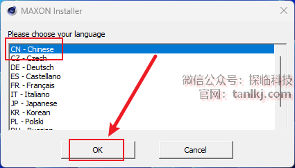语言栏中选择【CN-Chinese】,点击【OK】。