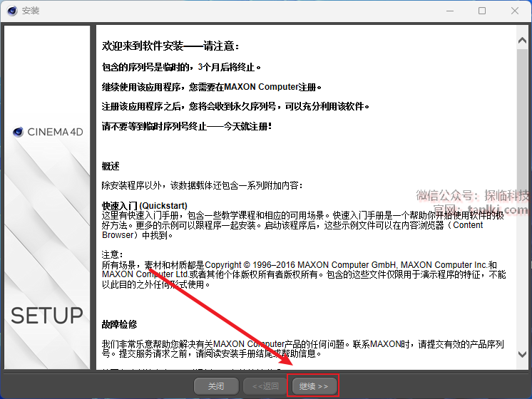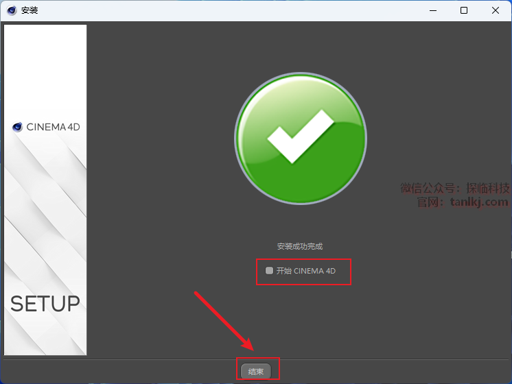 去掉勾选【开始CINEMA 4D】,点击【结束】。