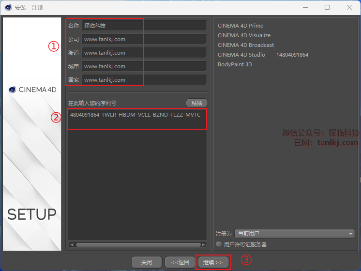 ①输入【名称、公司、街道、城市、国家】(可随意填写);