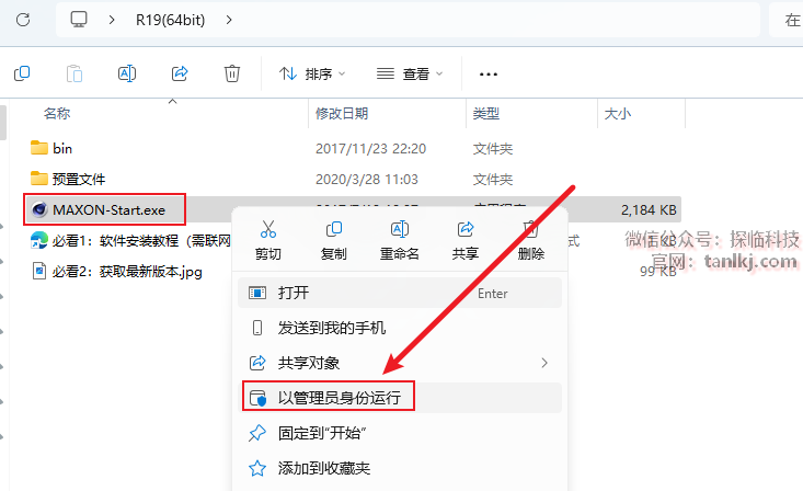 打开解压后的文件夹,右键程序【MAXON-Start】,点击【以管理员身份运行】。