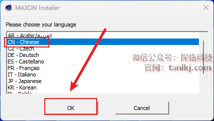 语言栏中选择【CN-Chinese】,点击【OK】。