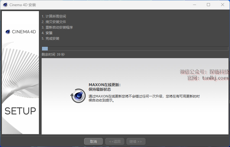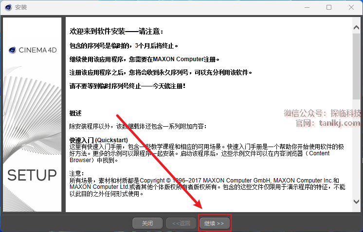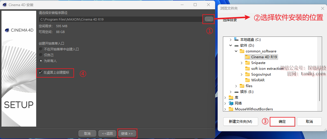 更改软件默认的安装位置,如不需更改,直接勾选【在桌面上创建图标】,点击【继续】即可。