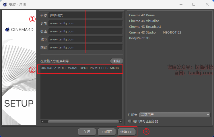 ①输入【名称、公司、街道、城市、国家】(可随意填写);