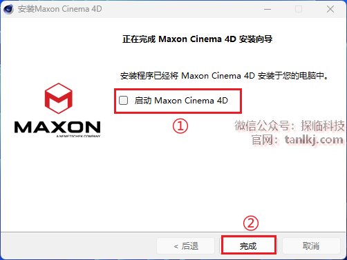 ①去掉勾选【启动 Maxon Cinema 4D】;