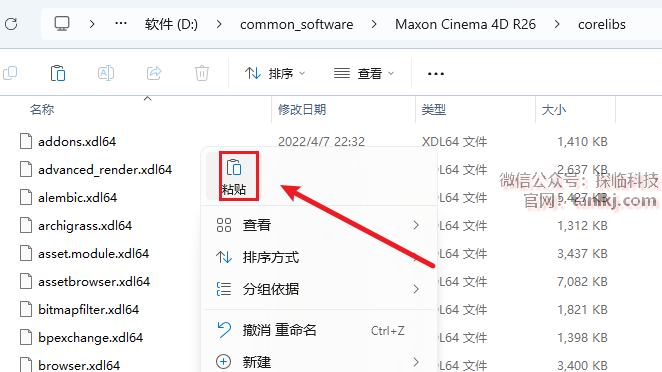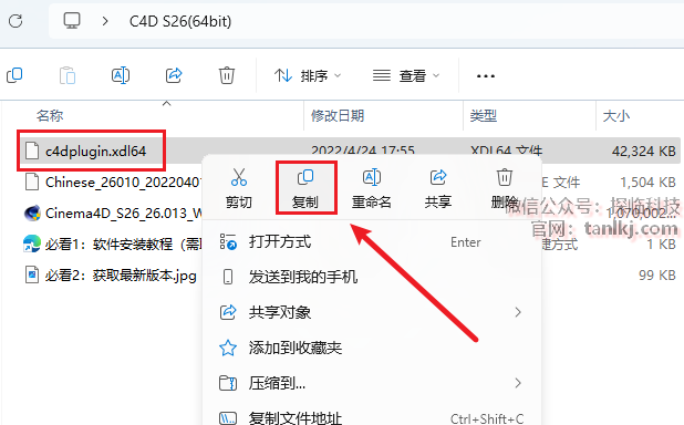 打开之前解压后的文件夹,复制文件【c4dplugin】。