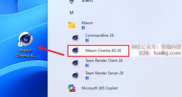 找到软件【Maxon Cinema 4D 26】,将其拖至桌面创建快捷方式。