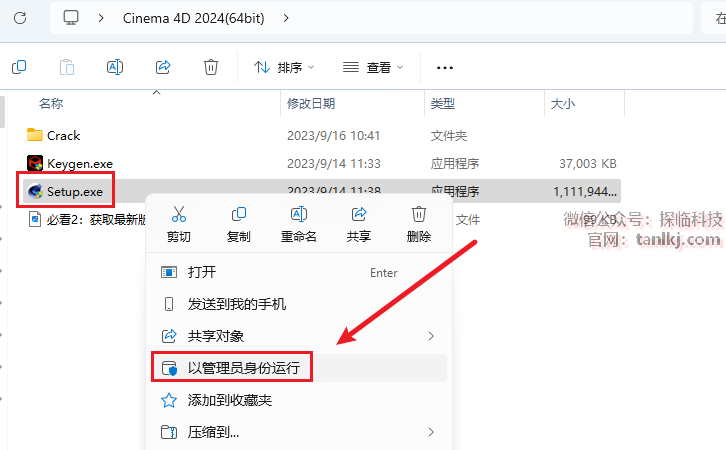 打开解压后的文件夹,右键程序【Setup】,点击【以管理员身份运行】。