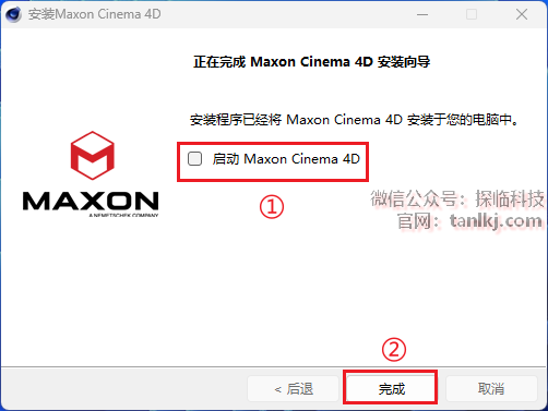 ①去掉勾选【启动 Maxon Cinema 4D】;