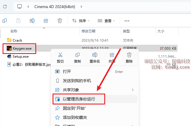 打开之前解压后的文件夹,右键程序【Keygen】,点击【以管理员身份运行】。