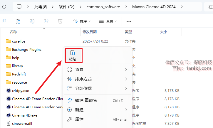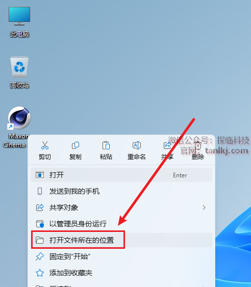 在桌面,右键软件【Maxon Cinema 4D 2024】,点击【打开文件所在的位置】。