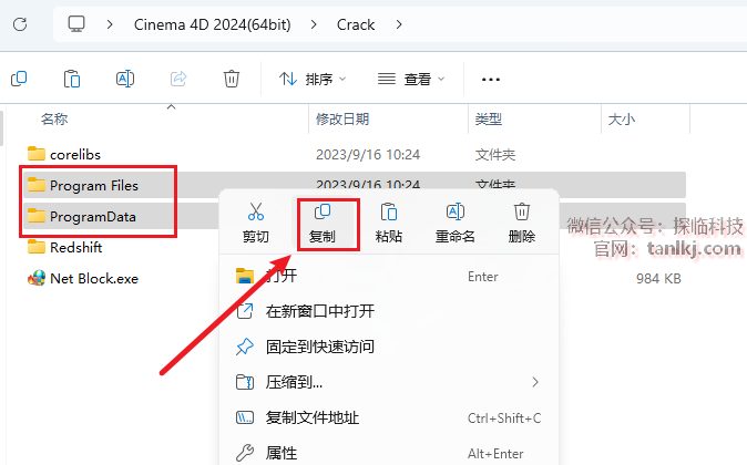 回到【Crack】文件夹中,复制文件【Program Files】和【ProgramData】。
