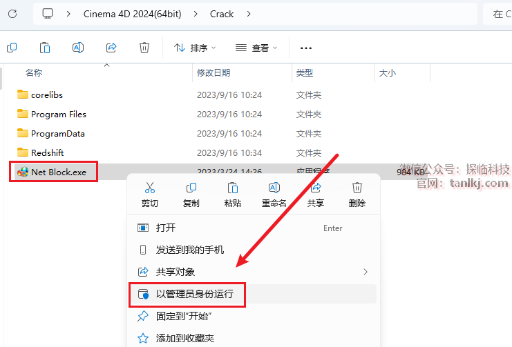 回到【Crack】文件夹中,右键程序【Net Block】,点击【以管理员身份运行】。