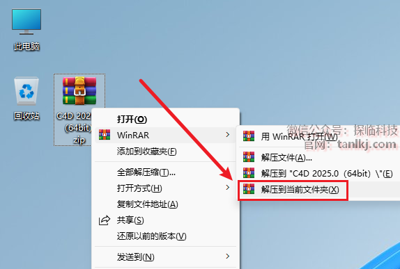 解压下载后的软件包。右键软件包,点击【解压到当前文件夹】(win11系统需先点击【显示更多选项】)。 (未安装解压软件可以点击此处查看:如何安装解压软件?)