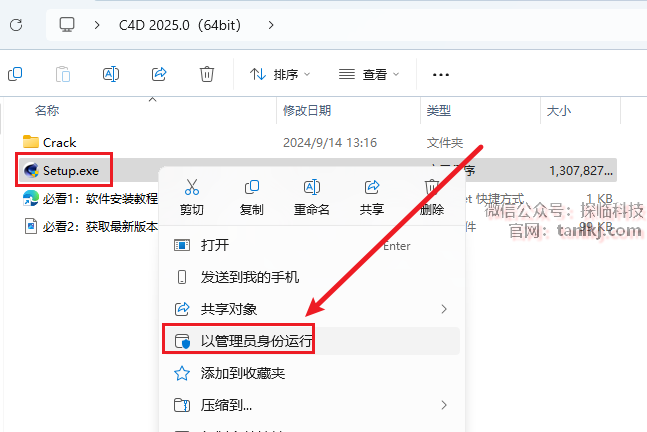 打开解压后的文件夹,右键程序【Setup】,点击【以管理员身份运行】。
