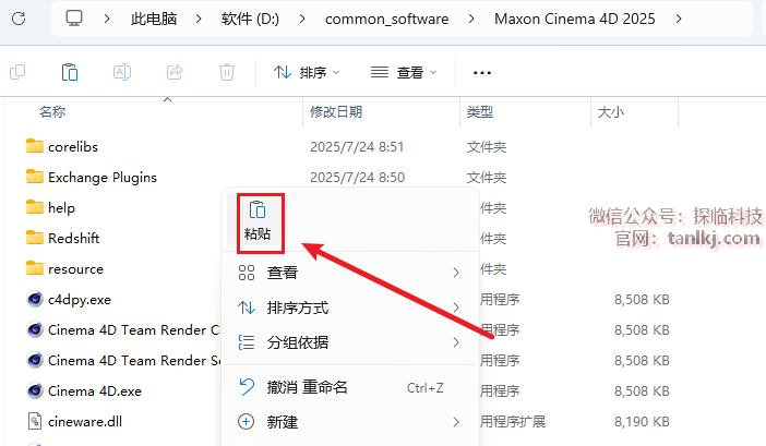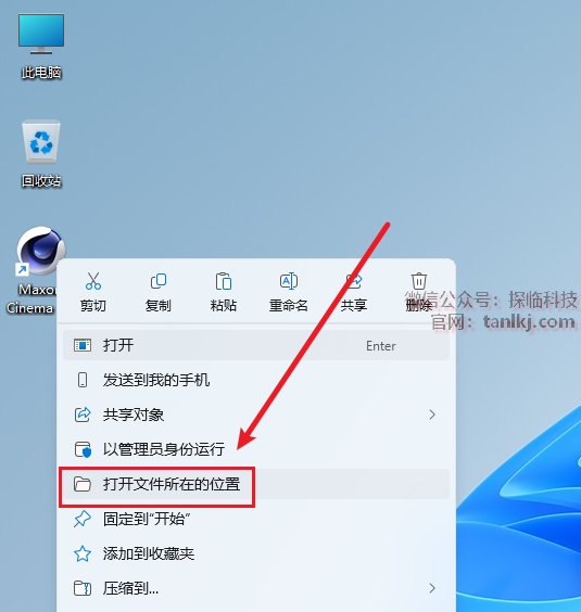 在桌面,右键软件【Maxon Cinema 4D 2025】,点击【打开文件所在的位置】。