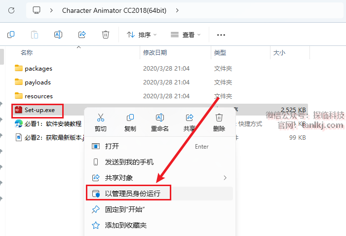 打开解压后的文件夹,右键安装程序【Set-up】,点击【以管理员身份运行】。