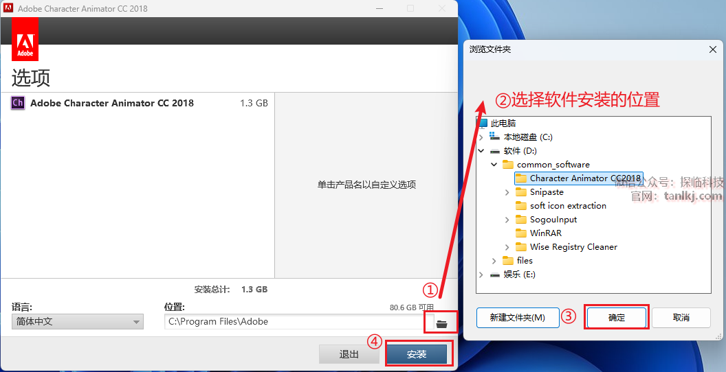 ②选择软件安装的位置,安装路径不能包含任何中文字符;