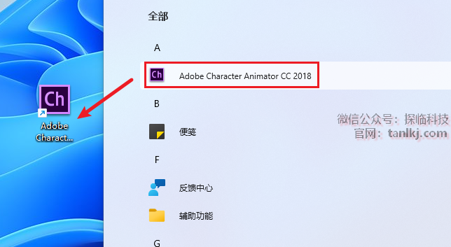 找到软件【Adobe Character Animator CC 2018】,将其拖至桌面创建快捷方式。