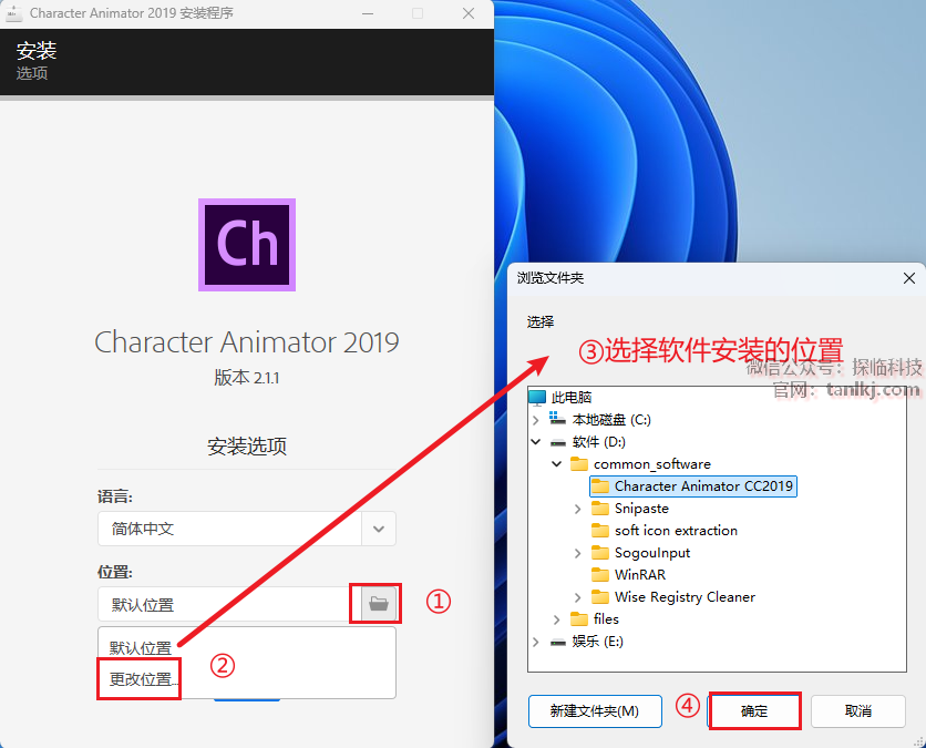 ③选择软件安装的位置,安装路径中不能包含任何中文字符;