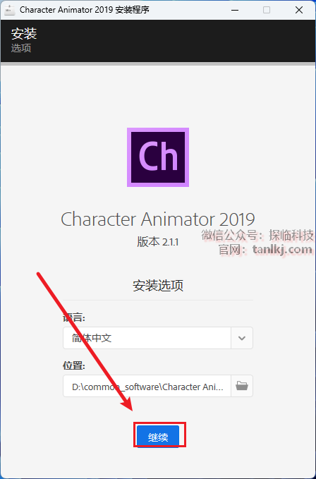 更改软件默认的安装位置,如不需更改,直接点击【继续】即可。