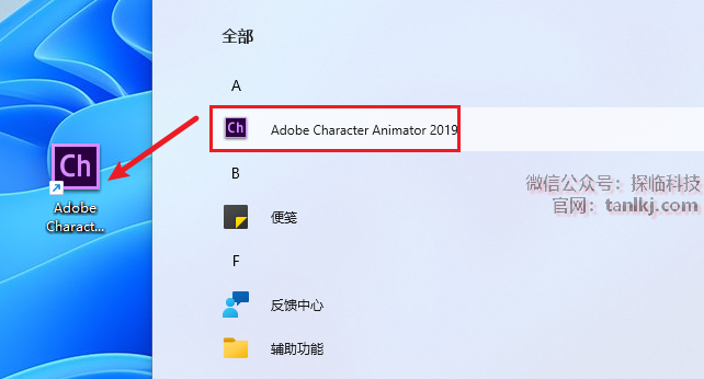 找到软件【Adobe Character Animator 2019】,将其拖至桌面创建快捷方式。