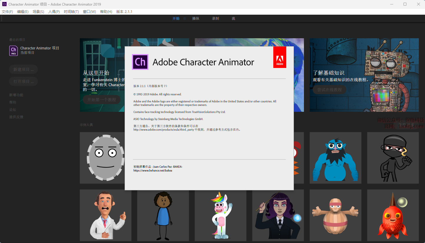 在桌面,双击运行软件【Adobe Character Animator 2019】。