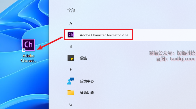 找到软件【Adobe Character Animator 2020】,将其拖至桌面创建快捷方式。