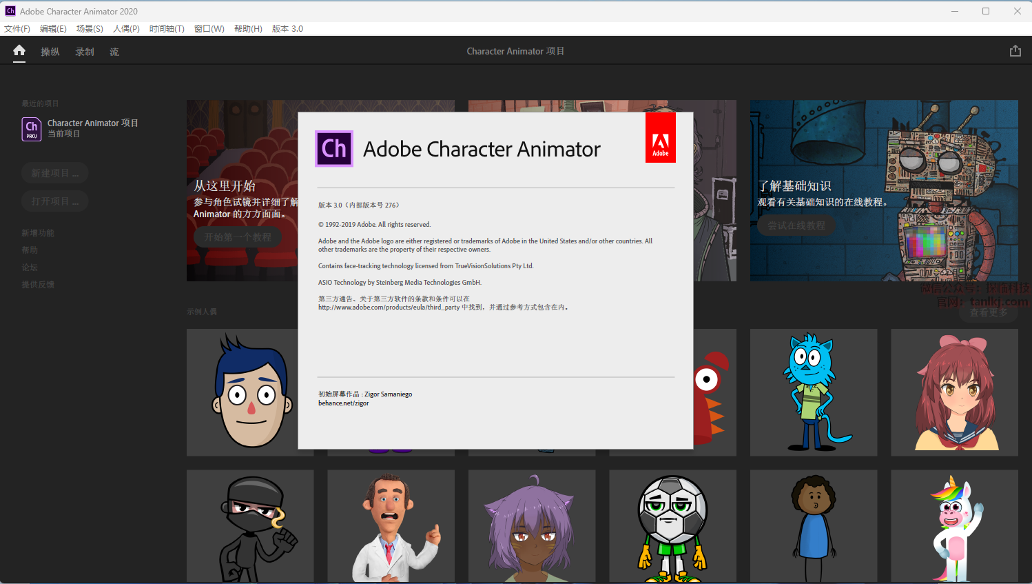在桌面,双击运行软件【Adobe Character Animator 2020】。