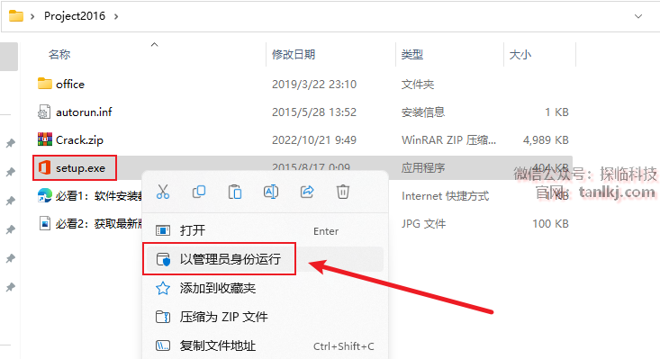 打开解压后的文件夹,右键安装程序【setup】,点击【以管理员身份运行】。