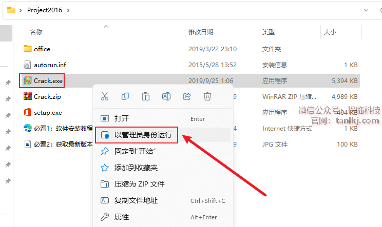 右键激活程序【Crack】,点击【以管理员身份运行】。