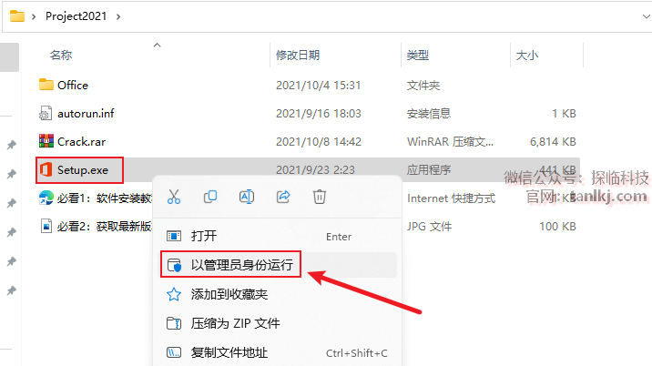 打开解压后的文件夹,右键程序【Setup】,点击【以管理员身份运行】。