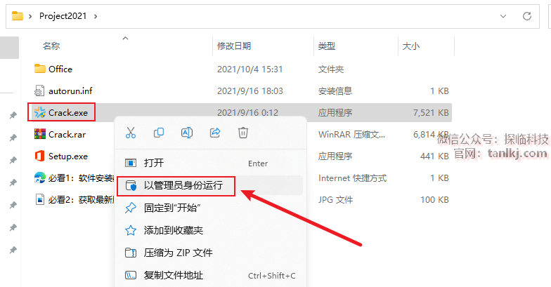 右键激活程序【Crack】,点击【以管理员身份运行】。