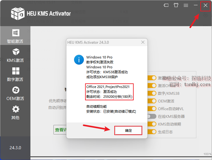 提示激活成功后,点击【确定】,点击右上角的【X】关闭程序。