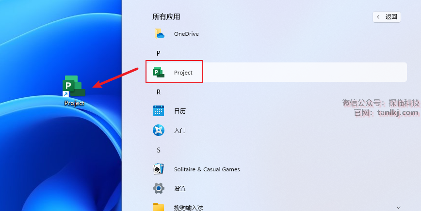 找到程序【Project】,将其拖至桌面创建桌面快捷方式。