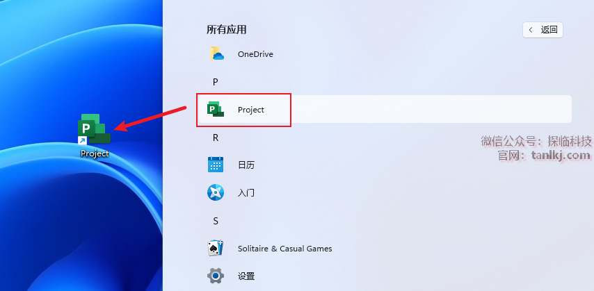 找到程序【Project】,将其拖至桌面创建桌面快捷方式。