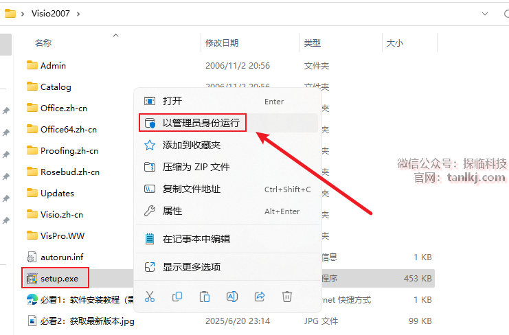 双击打开解压后的文件夹,右键安装程序【setup】,点击【以管理员身份运行】。